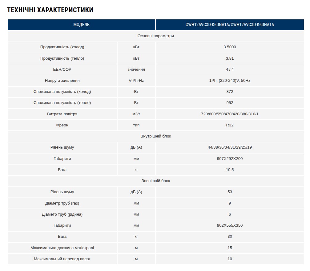 Купити GWH12AVCXD-K6DNA1A з безкоштовною доставкою по Україні