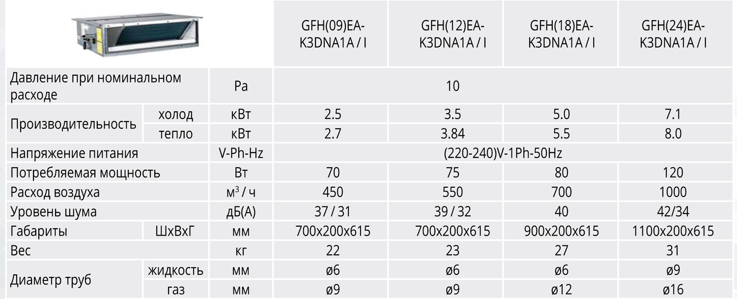 Gree GFH(18)EA-K3DNA1A/I - внутренний блок канального типа. Выбрать и купить мульти-сплит системы Gree другого типа, можно перейдя по ссылке в каталог на нашем сайте