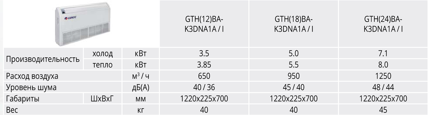 Gree GTH(18)BA-K3DNA1A/I - внутренний блок напольно-потолочного типа. Выбрать и купить мульти-сплит системы Gree другого типа, можно перейдя по ссылке в каталог на нашем сайте