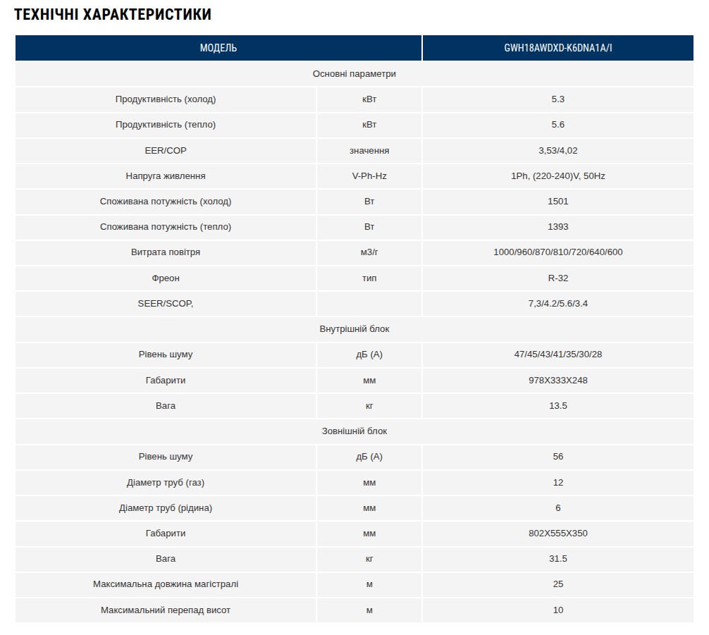 Купить GWH18AWDXD-K6DNA1A в Харькове с бесплатной доставкой
