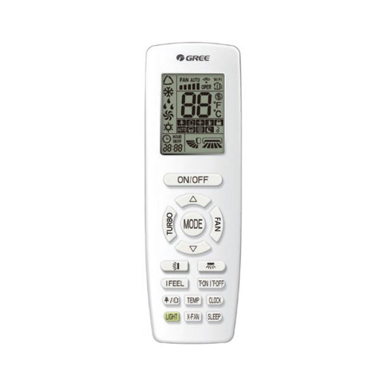 Пульт дистанционного управления оборудован специальным датчиком температуры. Он позволяет кондиционеру GWH24AGE-K6DNA1A измерять температуру в месте своего нахождения, а затем сообщает ее внутреннему блоку, таким образом кондиционер работает так, что бы достичь заданной температуры до места нахождения пульта.