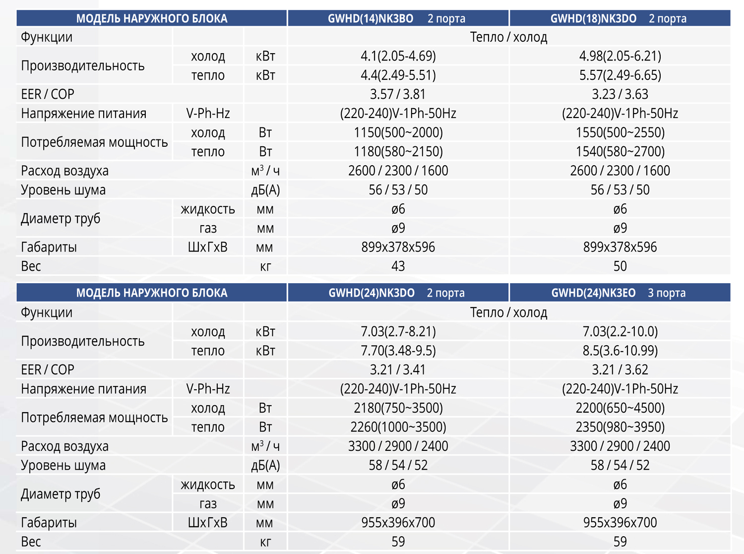 Gree GWHD(24)NK3DO 2 port - наружный блок с возможностью подключения от одного до двух внутренних блоков. Выбрать и купить мульти-сплит системы Gree с другими техническими характеристиками, можно перейдя по ссылке в каталог на нашем сайте